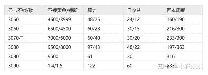 ### 市场决定价格,各个显卡的回本周期和收益我都替大家总结了,直接抄作业吧。