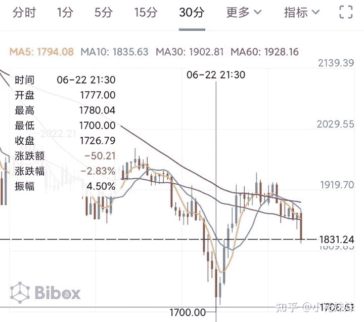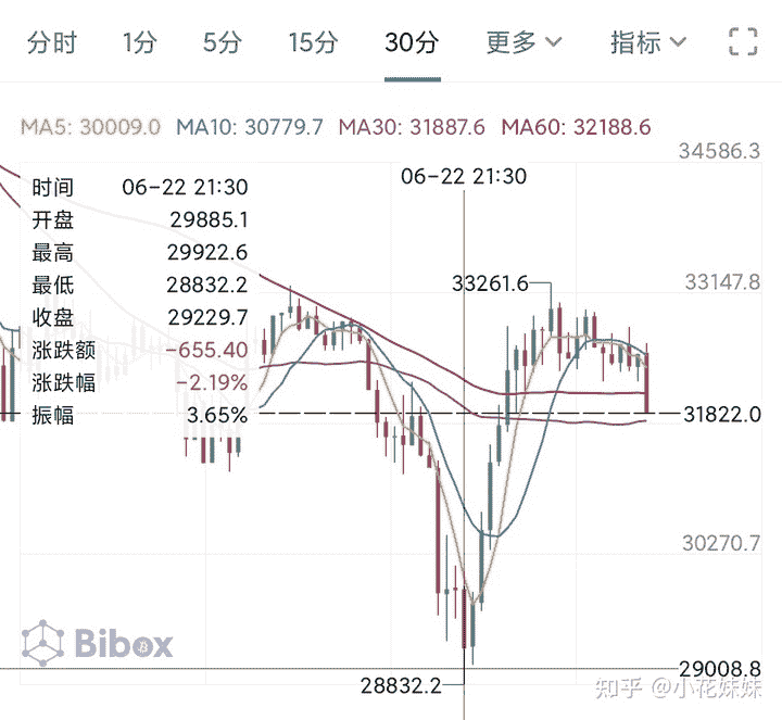截止今天6.23日,从5.19日BTC跌破2.9万USDT以后。在6.21号再次触底2.88万USDT。